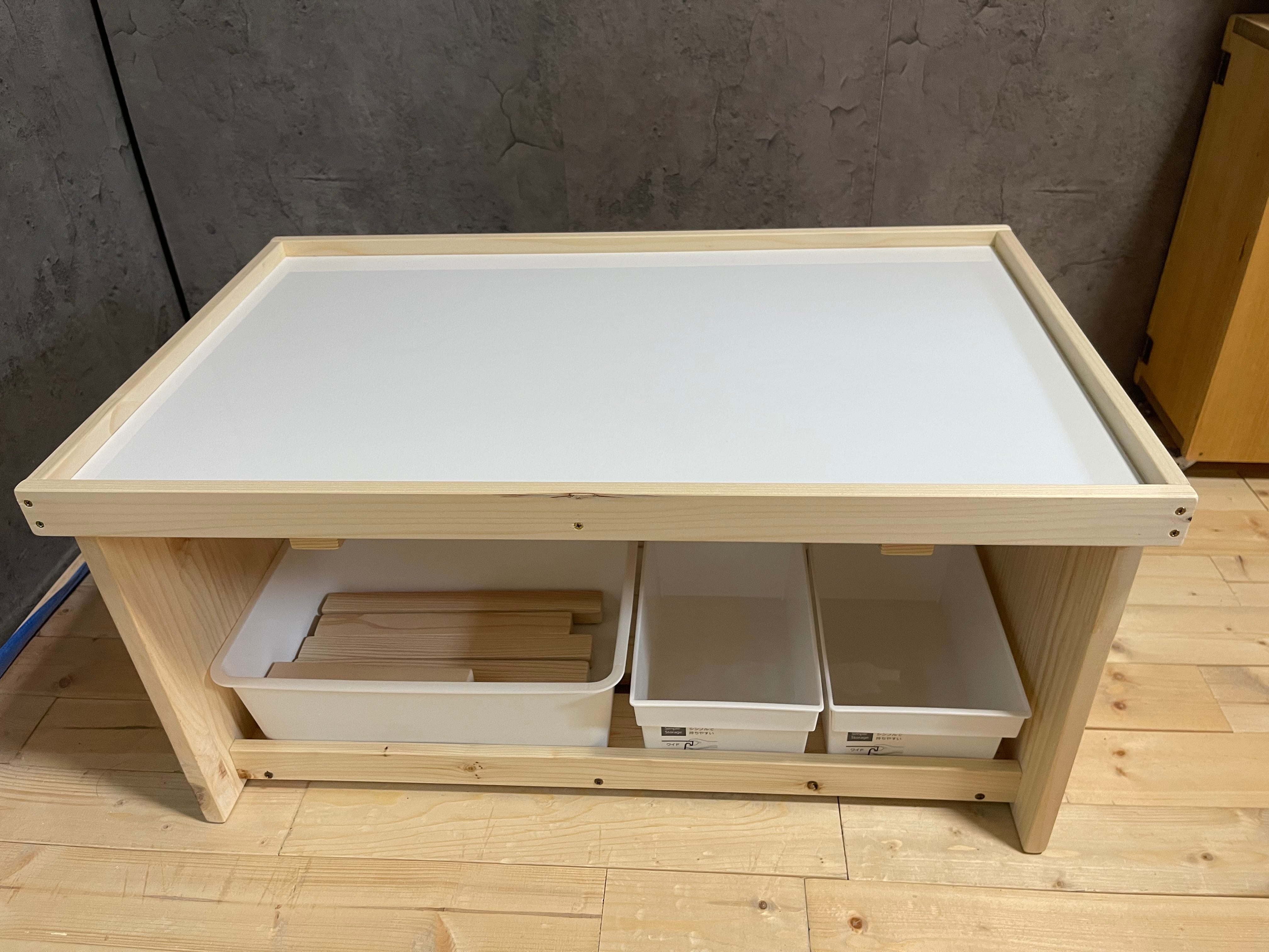 【知育 教育】ピタゴラスイッチが作れるテーブル!絵が描ける!飾れる!ホワイトボードテーブル!カグール工房のオリジナル製品